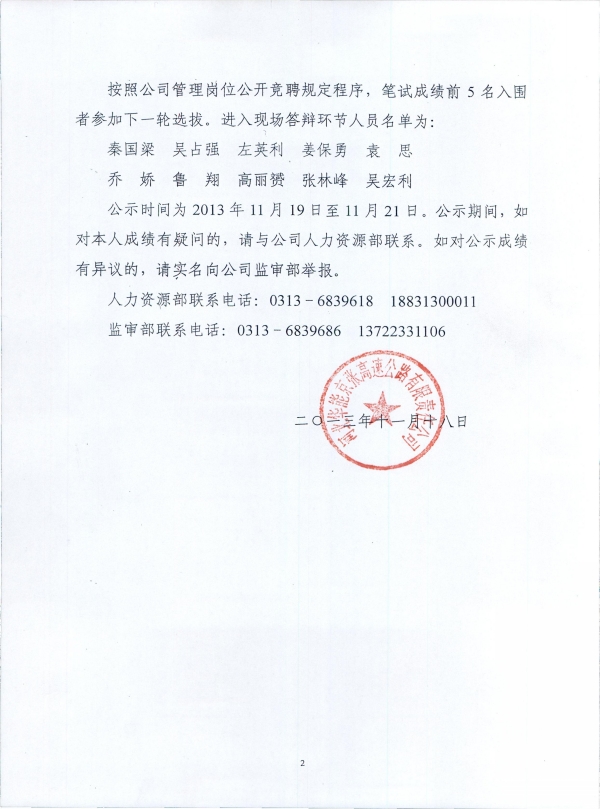 管理崗位公開競(jìng)聘筆試成績及入圍名單公示