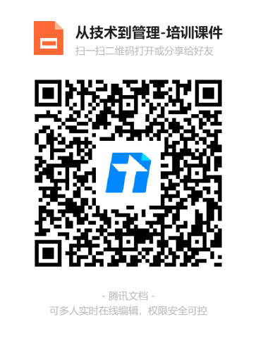 【騰訊文檔】《從技術(shù)到管理-培訓(xùn)課件》:https://docs.qq.com/slide/DT1ZDVVpvRmJzdExB